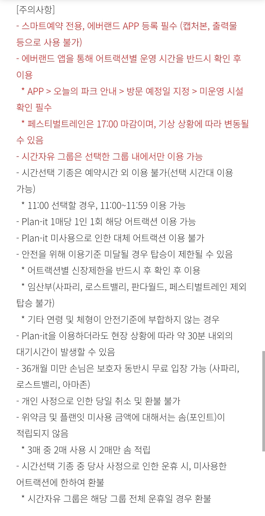 에버랜드 큐패스(Plan it) 유의사항