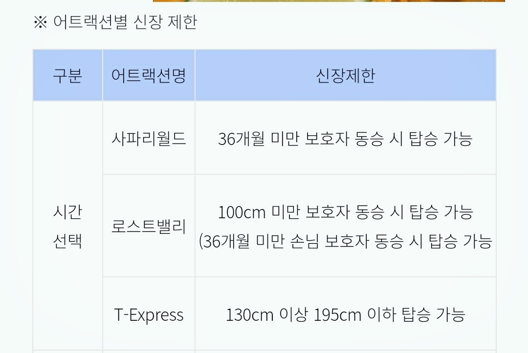에버랜드 어트랙션별 신장 제한