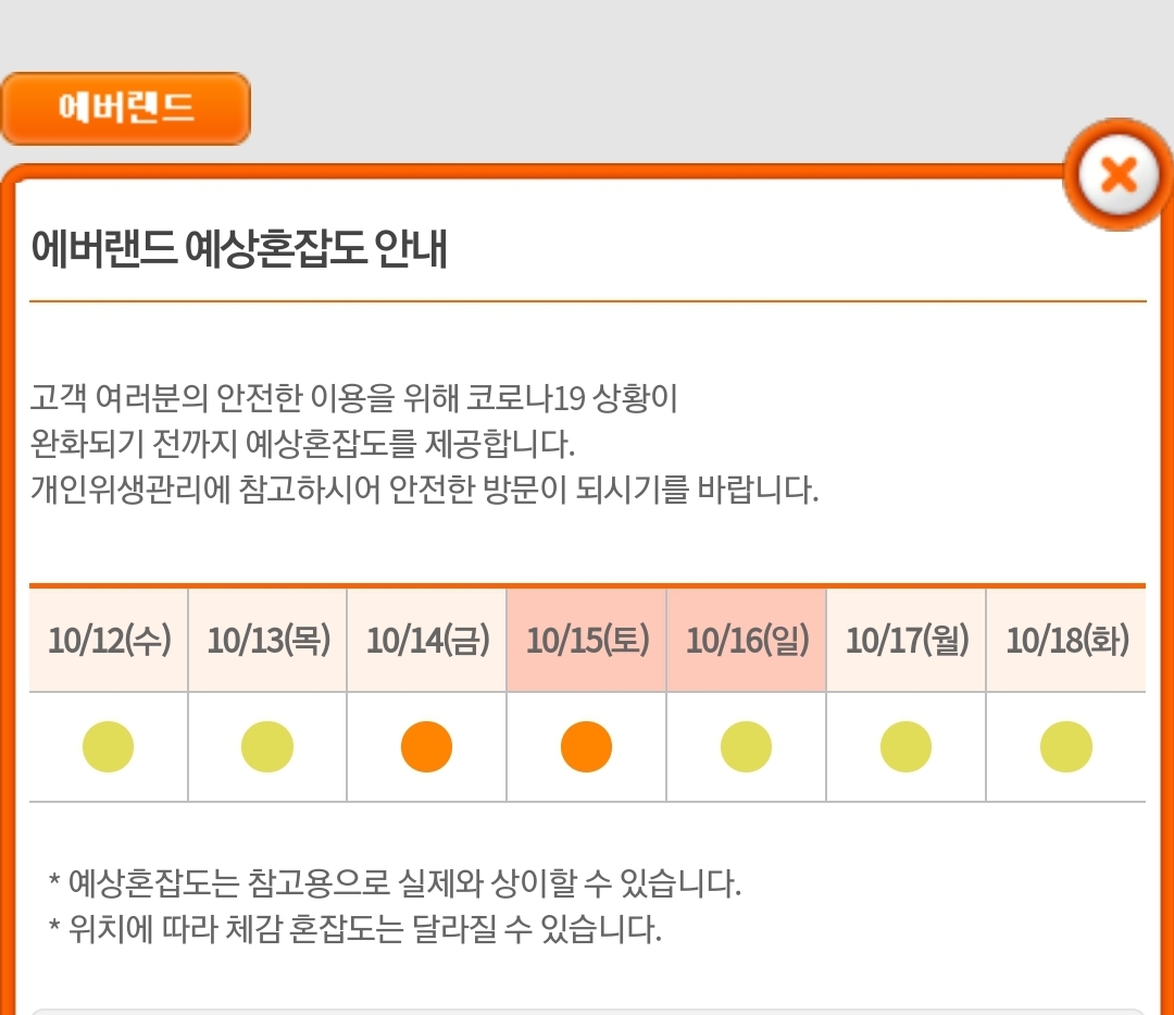 10월 21일부로 에버랜드가 코로나로 인해 제공 했던 혼잡예상도 제공을 중단했어요.